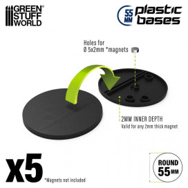 Estas peanas además incorporan un nuevo sistema con agujeros precortados para que puedas facilmente abrir huecos sin usar un taladro de mano de modelismo, donde poder introducir imanes de neodimio de 3x2mm o de 5x2mm que te ayudarán a magnetizar tus miniaturas.