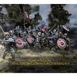 Conjunto de guerreros sin armadura de los primeros sajones de plástico duro de 28 mm.
